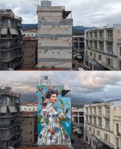 Στον πλαϊνό τοίχο μιας πολυώροφης πολυκατοικίας στο κέντρο της Καλαμάτας, μια γυναικεία μορφή τεράστιας κλίμακας μετατρέπει τον αστικό ιστό σε πεδίο μνήμης, συμβολισμών και σύγχρονης πολιτιστικής αυτοπεποίθησης. Είναι η τοιχογραφία «Καλαμάτα» του Κλεομένη Κωστόπουλου (KLE), το μοναδικό ελληνικό έργο που διεκδικεί τον τίτλο της καλύτερης τοιχογραφίας του κόσμου για το 2025 από τον διεθνή θεσμό Street Art Cities.