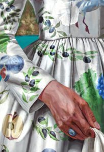 Τα αραιά δέντρα, τα πουλιά –από το κελάηδισμα έως το κοράκι– και η επιλογή μιας «ανθρώπινης», μη εξιδανικευμένης εικόνας της Κάλλας, συμπληρώνουν τον κύκλο της ζωής. Το φόρεμα της μορφής παραπέμπει στα αγροτικά προϊόντα και την παραγωγική ταυτότητα της περιοχής.