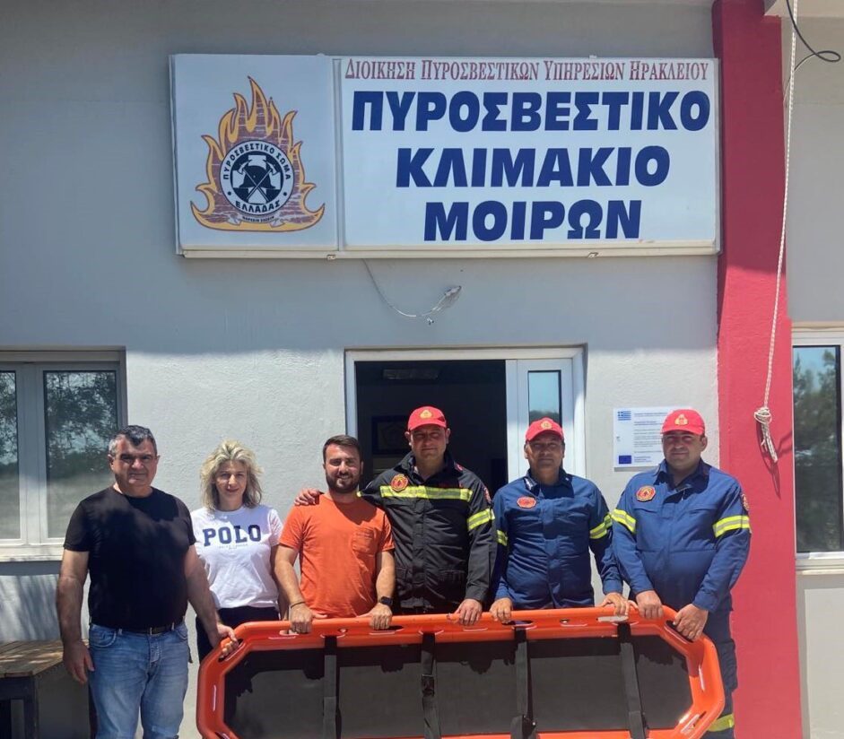 Ένα ειδικού τύπου φορείο για μεταφορά τραυματιών σε δύσβατες περιοχές, παρέδωσαν στο Πυροσβεστικό Κλιμάκιο Μοιρών, η Μάταλα Μονομετοχική Δήμου Φαιστού Α.Ε. και ο Δήμος Φαιστού.