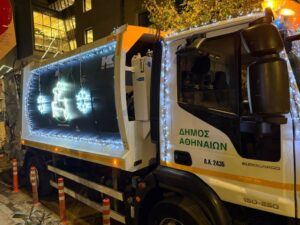 Μια απρόσμενη εικόνα έχει αρχίσει να ξεχωρίζει στους δρόμους της Αθήνας, μετατρέποντας τη ρουτίνα της νυχτερινής κυκλοφορίας σε κάτι γιορτινό. Τα απορριμματοφόρα του Δήμου Αθηναίων κινούνται στολισμένα με φωτεινά λαμπιόνια, τραβώντας τα βλέμματα πεζών και οδηγών και προσθέτοντας χρώμα και φως εκεί που κανείς δεν το περίμενε.
