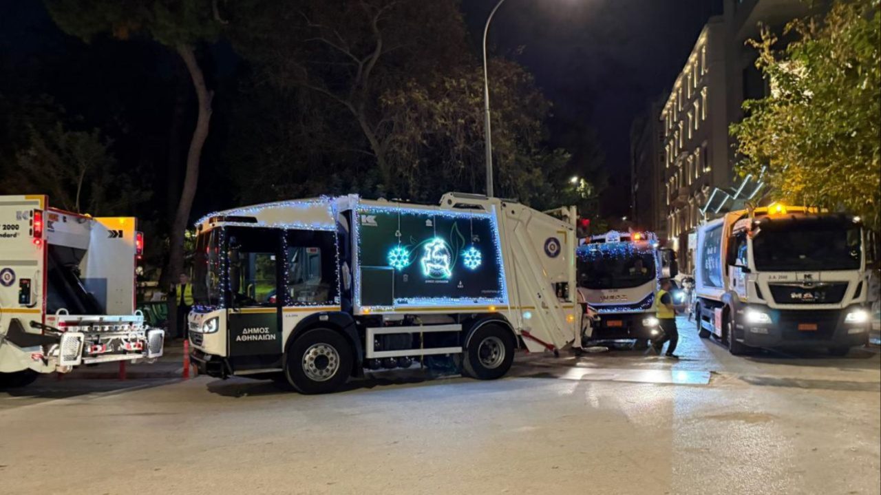 Μια απρόσμενη εικόνα έχει αρχίσει να ξεχωρίζει στους δρόμους της Αθήνας, μετατρέποντας τη ρουτίνα της νυχτερινής κυκλοφορίας σε κάτι γιορτινό. Τα απορριμματοφόρα του Δήμου Αθηναίων κινούνται στολισμένα με φωτεινά λαμπιόνια, τραβώντας τα βλέμματα πεζών και οδηγών και προσθέτοντας χρώμα και φως εκεί που κανείς δεν το περίμενε.