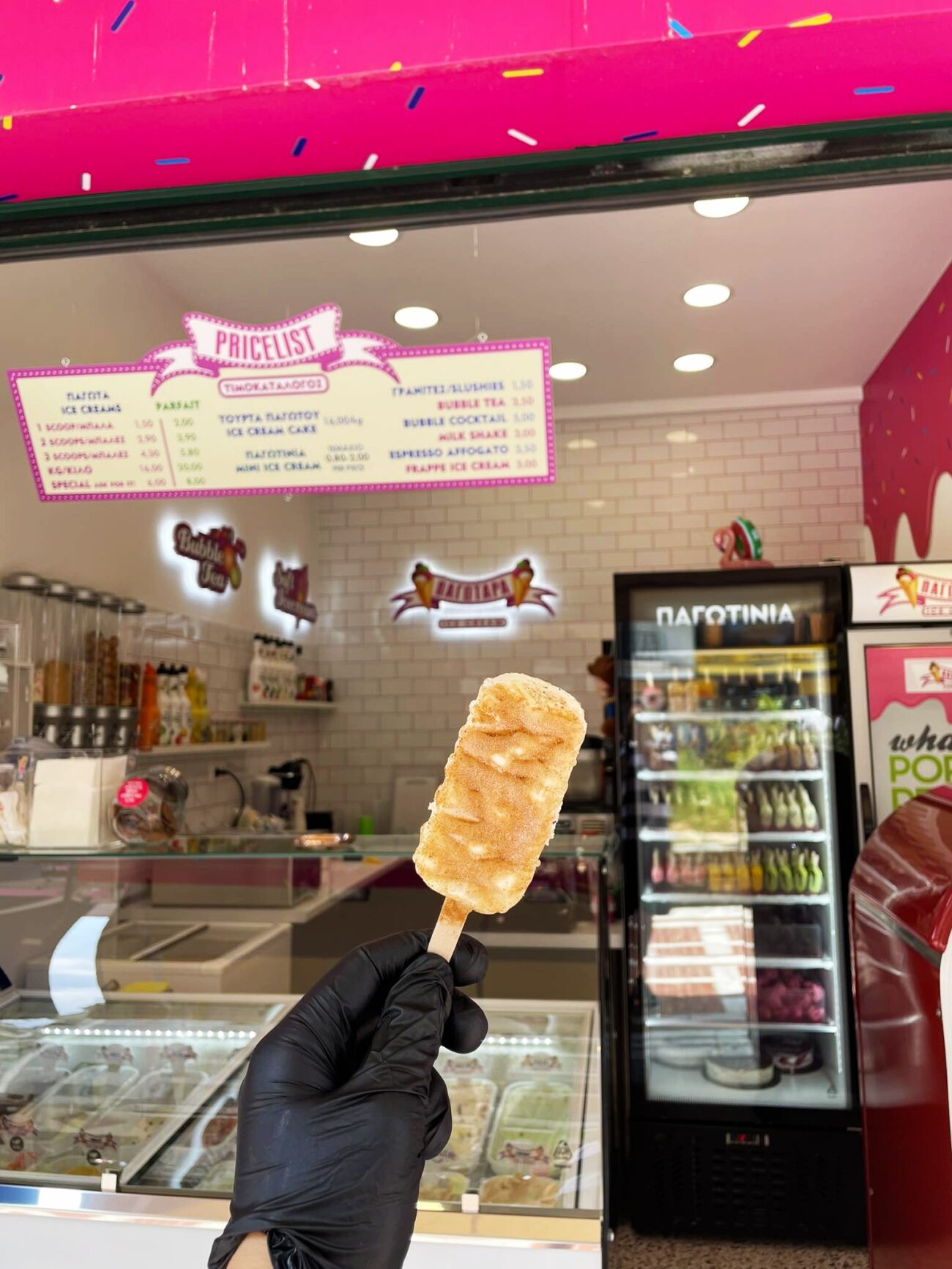 Ο μάστορας ανοίγει με δεξιοτεχνία το φύλλο, βάζει το ένα πάνω από το άλλο και ενδιάμεσα τοποθετεί τη γέμιση- αλμυρή ή γλυκιά, για να γίνει η μπουγάτσα . Αυτός είναι ο παραδοσιακός τρόπος παρασκευής του ξεχωριστού αυτού εδέσματος, που κατατάσσεται ψηλά στις προτιμήσεις των τουριστών για το πρωινό τους γεύμα. Όταν όμως η μπουγάτσα γίνεται …παγωτό, τότε ο τρόπος παρασκευής αλλάζει και το μόνο κοινό στοιχείο είναι η γεύση που απογειώνει και τον πιο απαιτητικό ουρανίσκο!