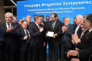 Το Μνημόνιο υπέγραψαν ο υπουργός Κλιματικής Κρίσης και Πολιτικής Προστασίας, Γιάννης Κεφαλογιάννης, και ο πρόεδρος του Δ.Σ. του Ελληνικού Δικτύου Ανθεκτικών Πόλεων και δήμαρχος Ελληνικού-Αργυρούπολης, Γιάννης Κωνσταντάτος, παρουσία 150 δημάρχων ή εκπροσώπων τους – μελών του Δικτύου.